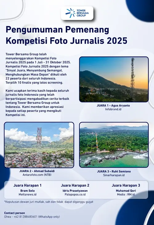 Tower Bersama Group dengan bangga mengumumkan para pemenang Kompetisi Foto Jurnalis 2025.